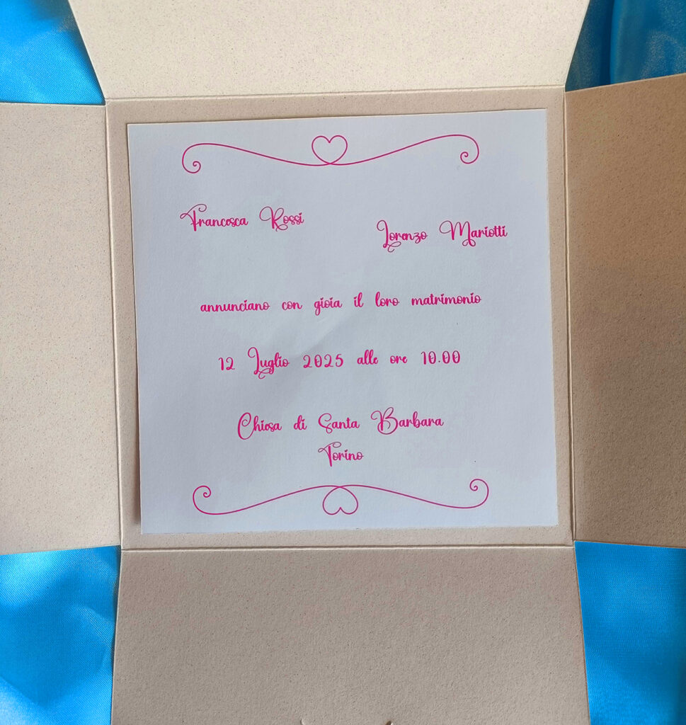 Dalle partecipazioni al menù, dai piccoli gadget per gli invitati al tableau de mariage per la tua location preferita, possiamo occuparci di rendere il tuo giorno più bello… ancora più bello!